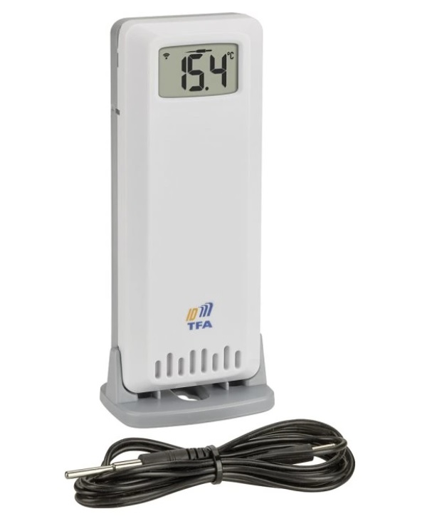 Vysílač TFA 30.3902.02 ID-A0 pro systém TFA.me je vhodný pro vnitřní i vnější měření teploty, vodotěsný kabelový senzor umožňuje měření teploty v kapalinách nebo na místech, kde je přímé umístění senzoru náročné, například v chladničkách, mrazničkách, akváriích nebo teráriích.